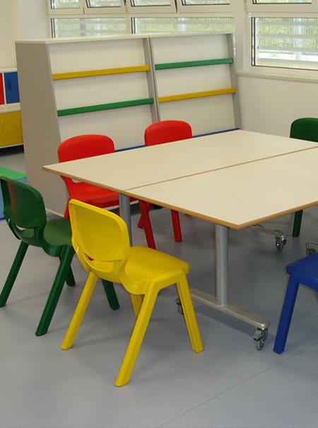 Equipamos todo tipo de espacios para centros escolares o formativos con mobiliario específico y homologado para aulas, comedores, bibliotecas, espacios comunes… que cumple con las más estrictas normas de calidad y seguridad.