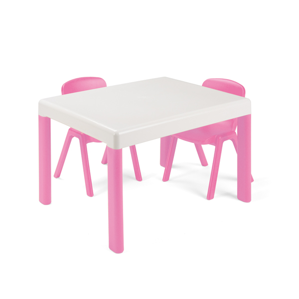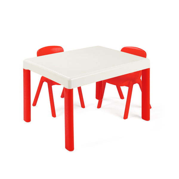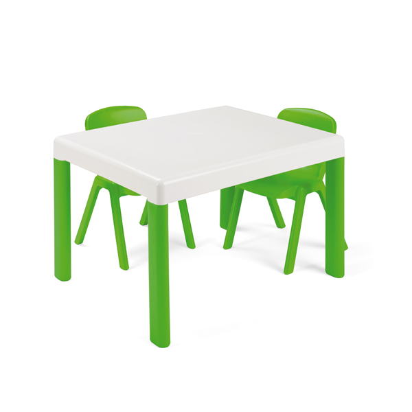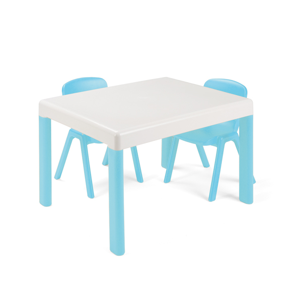 Kit compuesto por 4 sillas monoblock y una mesa de 75x60cm, en 3 tamaños disponibles.