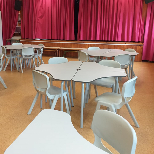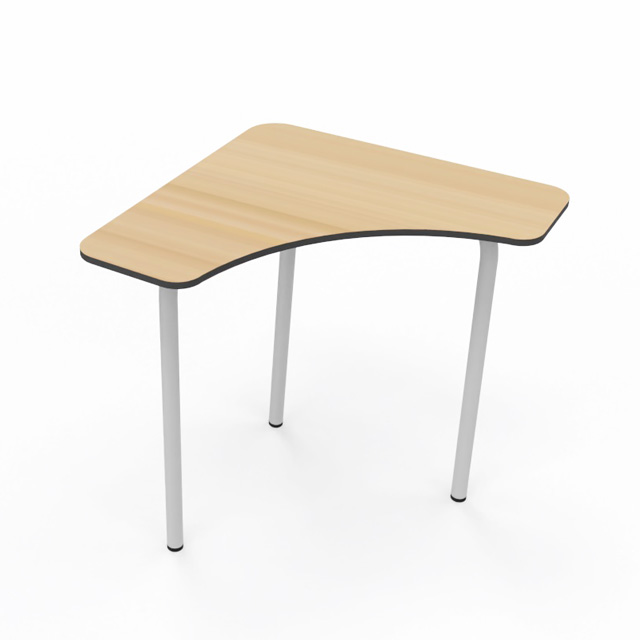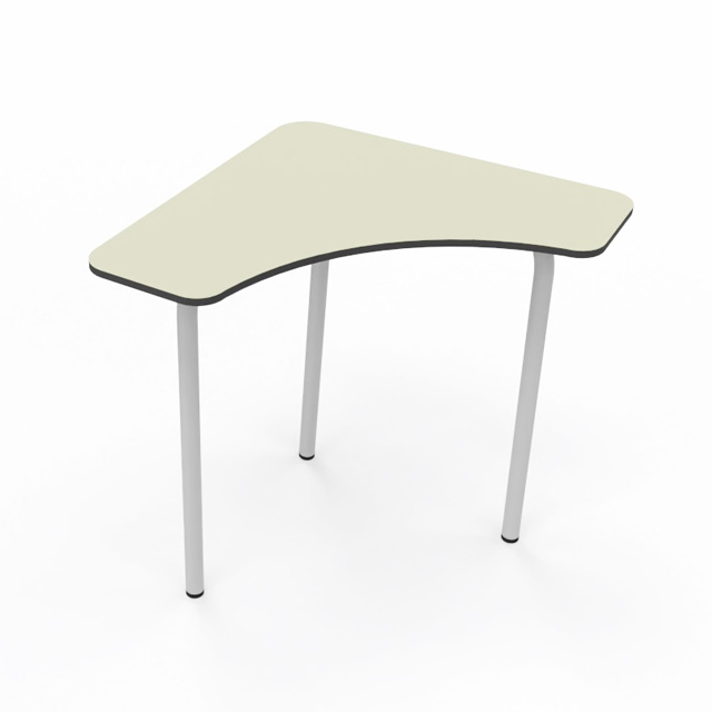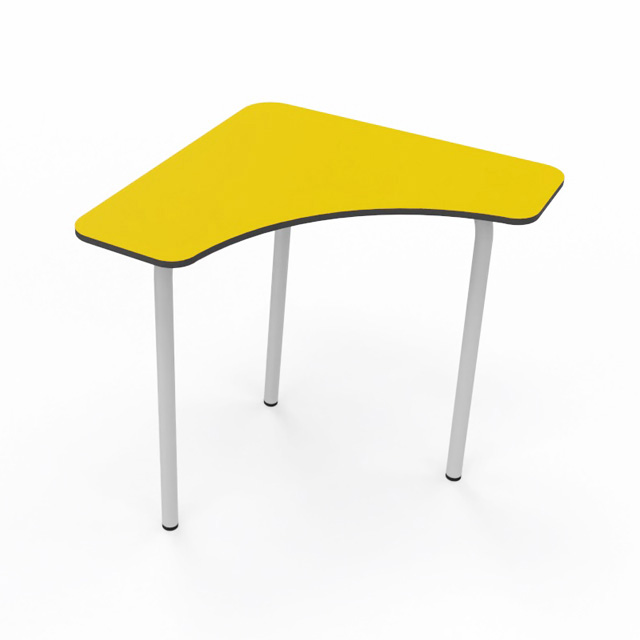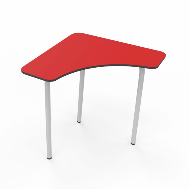 Mesa modular de colectividad para aulas de aprendizaje cooperativo. Su diseño permite distintas combinaciones para trabajar en grupo o individualmente. Se pueden formar grupos de 140cm de diámetro con 4 mesas, además de muchas otras formas. La tapa es de 70x70cm. Estructura metálica Ø35mm soldada pintada en epoxy. Tapa fabricada en Compac Plus HPL® de 14mm con cantos mecanizados en redondo.