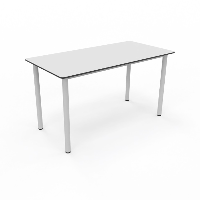 Mesa rectangular de colectividad para aulas comunes o de aprendizaje cooperativo. Está disponible en versión de 180x80cm, 160x80cm, 140x80cm y 120x80cm. Estructura metálica soldada con bastidor perimetral y patas de Ø50mm pintada en epoxy. Tapa fabricada en Compac Plus HPL® de 14mm con cantos mecanizados en redondo. Se puede fabricar en otros tamaños.