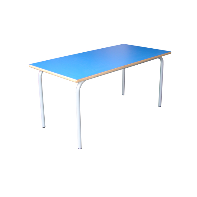 Mesa de infantil. Estructura metálica 35mm pintada en epoxi. Tapa fabricada en laminado estratificado HPL con cantos cabeceados en madera de haya, mecanizados y barnizados.