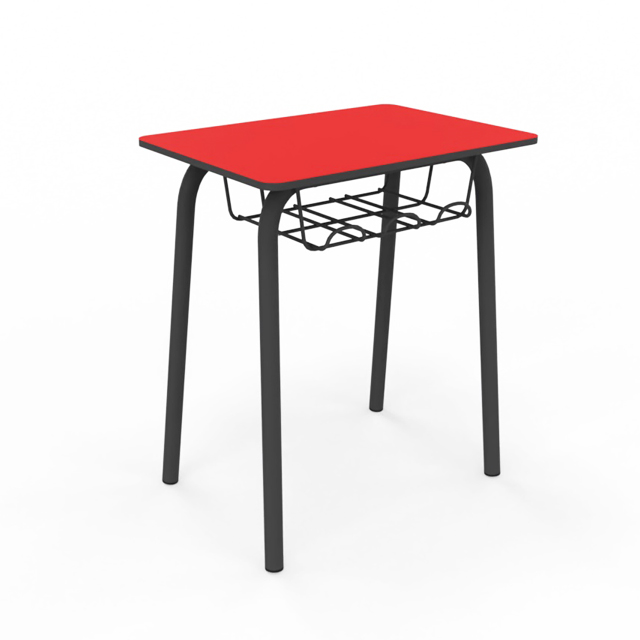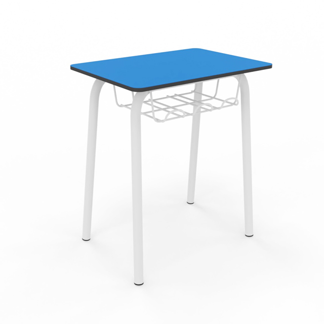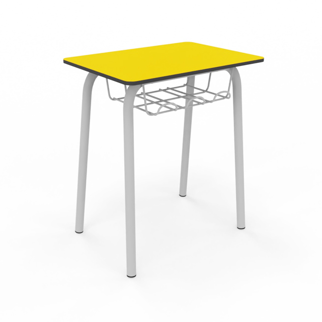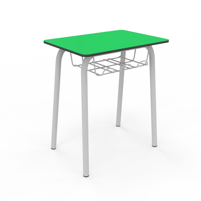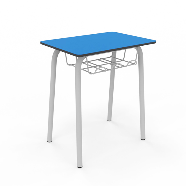 Pupitre para aulas de aprendizaje individual o cooperativo. Tapa de 65x45cm y disponible en todas las alturas homologadas. Estructura metálica Ø35mm soldada pintada en epoxy. Tapa fabricada en Compac Plus HPL® de 14mm con cantos mecanizados en redondo. Bandeja portalibros de parrilla metálica.