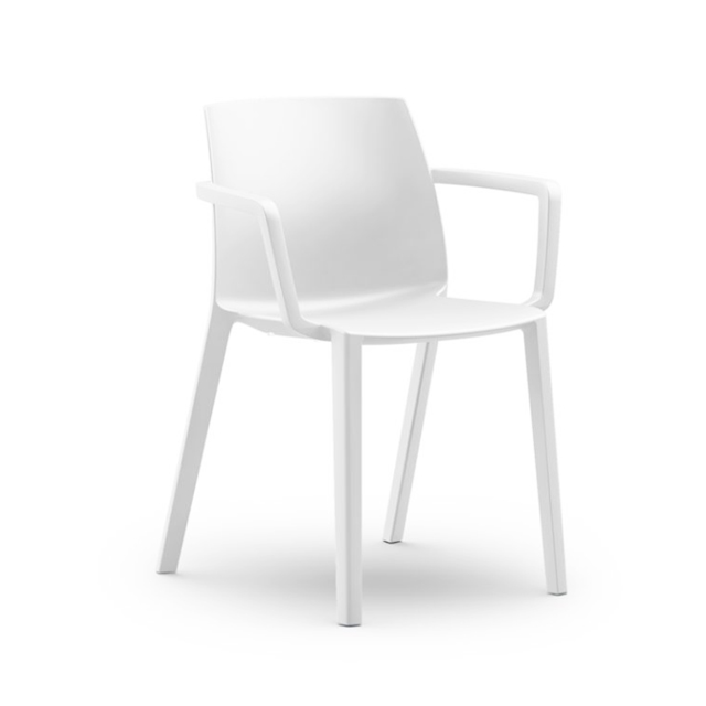 Silla monoblock para colectividades con brazos. Fabricada 100% polipropileno inyectado. Apilable.