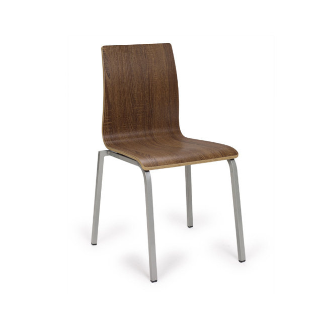 Silla para colectividades de estructura metálica de tubo cuadrado pintado en epoxi gris. Carcasa de madera contrachapada. Apilable.