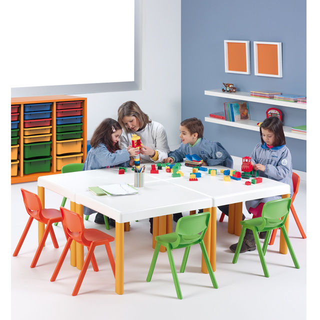 Silla escolar totalmente producidas en polipropileno de alta calidad de doble pared y perfectamente apilables. Las sillas Monoblock han sido probadas y certificadas por el laboratorio FIRA INTERNACIONAL, una autoridad líder en pruebas de muebles en todo el mundo. Las sillas Monoblock cumplen la norma EN 1729 parte 1 y 2 (estándar europeo para el tamaño, la resistencia y la estabilidad). FABRICACIÓN EUROPEA.